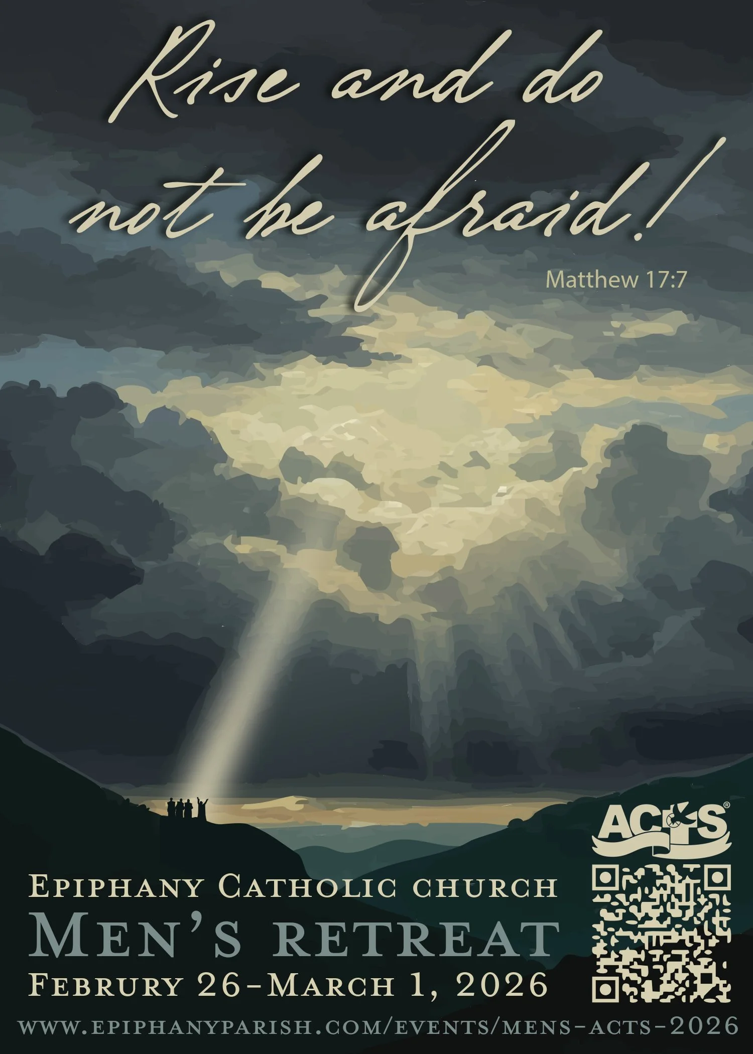 The Epiphany ACTS Retreat will be held from Thursday, Feb 26th, to Sunday, Mar 1st. Please do not allow financial hardship to prevent you from going on this retreat. Should you need financial assistance, simply click that button below during registration. We invite all men who have not previously attended an ACTS retreat. The retreat begins Thursday evening with check-in at 6:00 PM in the Parish hall and ends Sunday following the 11:00 AM Mass. Round-trip transportation to and from the retreat center will be provided.